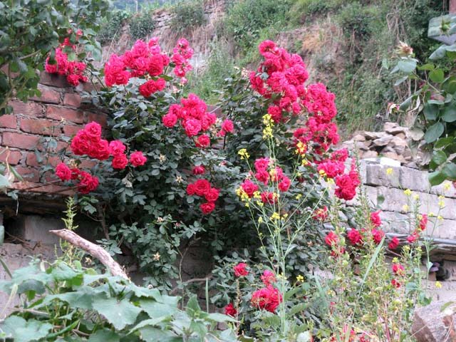 Wild roses adorning the sidewalks all the way from Joshimath to Auli