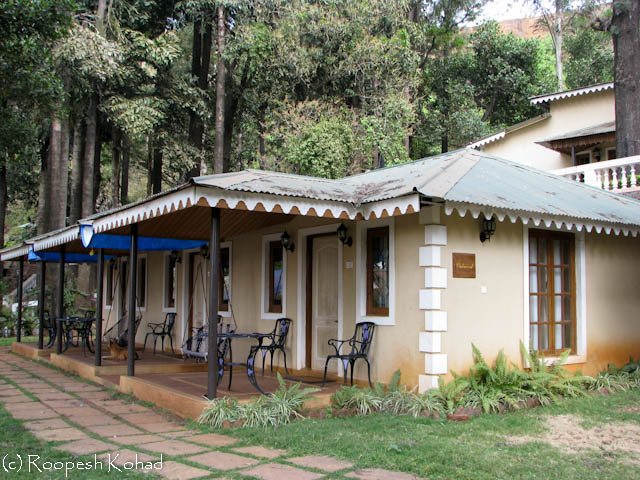 Our room was part of Oakwood cottage, finely built with wood and had nice decor, well draped and with modern amenities. In the front yard there was a lawn lined with railing and Silver Oak trees.