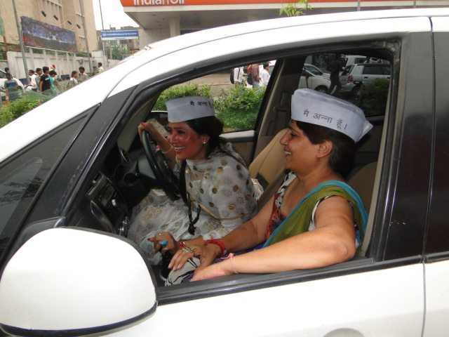 “Main Anna Hoon” Baby and the two activists in car – These are news pics and can be used with a news story / tutorial.