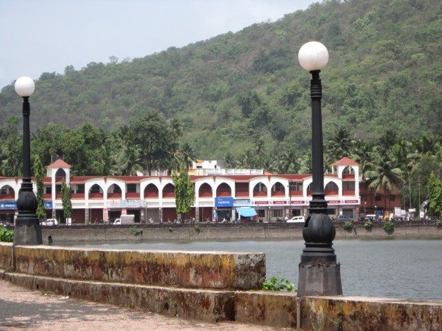 We stopped for a few minutes to take some pictures of the pretty Sawantwadi lake and town.
