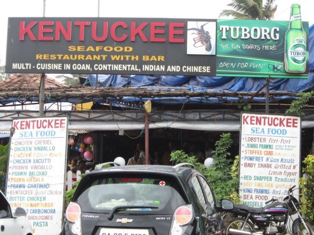 We decided to have lunch at a shack on Colva beach, and entered “Kentuckee” restaurant at 2.15 pm.