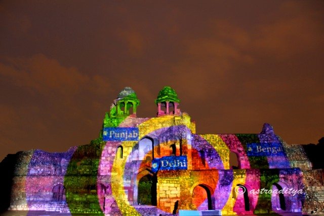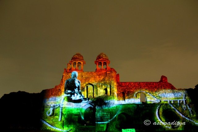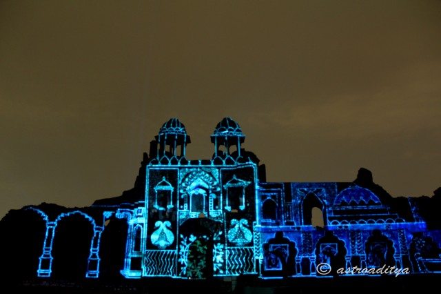It took us an hour or so to cover the monument, not massive though as all of it is in the ruins except the Qila-i-Kuhna Mosque, the only building which is well preserved. It was around 5.00 pm when we came out or the slight drizzle which forced us to. The Light and sound show was scheduled for 6.30pm start but rain threat was looming large as it would have been cancelled then. So we went to the canteen outside and waited as they would start giving the tickets only half an hour before the show i.e 6.00 pm. Well, i was praying for the drizzle to stop and luckily it did. We went to the ticket counter again and bought the tickets (Rs. 80/-) for the show ‘ Ishq-e-dilli’….