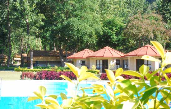 There are 10 cottages, 10 Swiss Tents and 10 Suites. It has a Swimming Pool, a dining room, a bonfire place (covered) and river Ram Ganga goes sideways so you can always step down and take a dip.