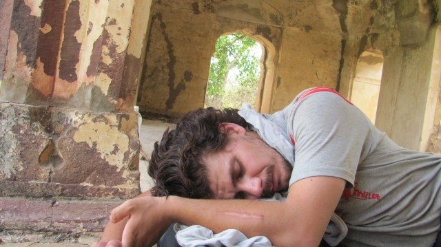 My immediate concern as soon as they left was to find high ground to spend the night, so the closest and safest high ground was the top of the tomb itself where we had been for few hours now. I asked Vishal if he could help shoulder my weight to reach the tomb top, he immediately agreed, so the plan was that he would bend against the tomb wall and stand straight when I climbed on his shoulders and I would pull him up when I reached the roof. The plan seemed to work for a while, but as soon as I reached the tomb and tried to find something to hold on to, to pull myself up, God knows what happened to Vishal and he couldn’t take my weight and I came down crashing on the ground landing on my left palm. Vishal had forgotten to tell me that he had a steel rod in one of his hands I was trying to find footing on. Too bad! It was too late to know that.