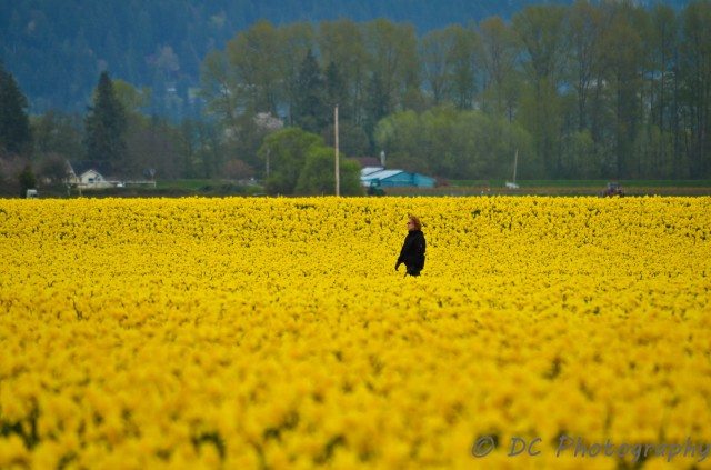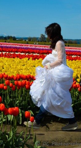 After Tuesday morning, I went back to the tulip fields again on Saturday, such was the temptation of a sunny day in Seattle. This time, the fields looked even prettier, and there were lot many people. Kids happily scampered around, couples posed, and there was one Japanese lady who had dressed as a bride for the purpose of a photo shoot in the fields. I have never seen an enthusiast who wears blue denims under the lacy white bridal dress. We drove for miles that day, stopping to take pictures by the fields here and there, in awe of the beauty and color.