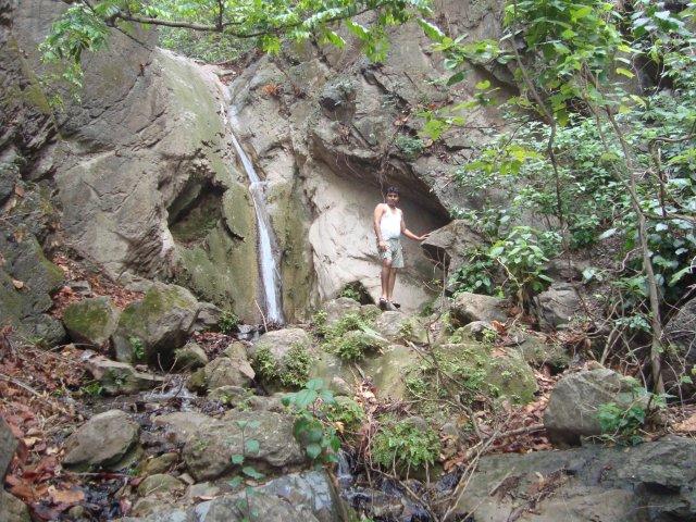 After some 5 – 7 Kms, we stopped for clicking some pics & parked the car on the side of this busy road (Because lot of people visit Neelkanth Mandir). Surprisingly, at this place only, we could see a small fall. We could not resist ourselves to go near it. (Caution: This fall is not at all visible from the road. This was our luck that we stopped there and could see the Fall.) The water was very cold and clean. We spent some time there and clicked some pics.