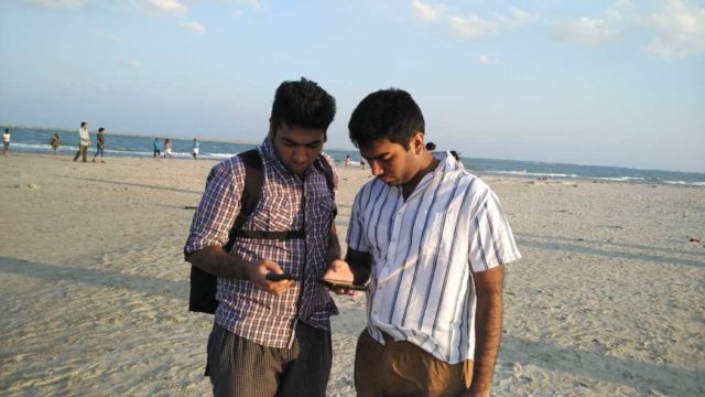 We reached the end of the land where the two oceans meet. The driver parked his car and we watched the deep blue sea, the sand we had to cross to reach the beach. After a short walk on sand we reached the beach and wondered how peaceful the place was. The gorgeous blue water of Bay of Bengal mixing with Indian ocean and you find yourself on a strip of land, no sign of life. You cannot venture the sea only step in and wade a little because sea has sudden depths Swimming is quite unsafe here.
