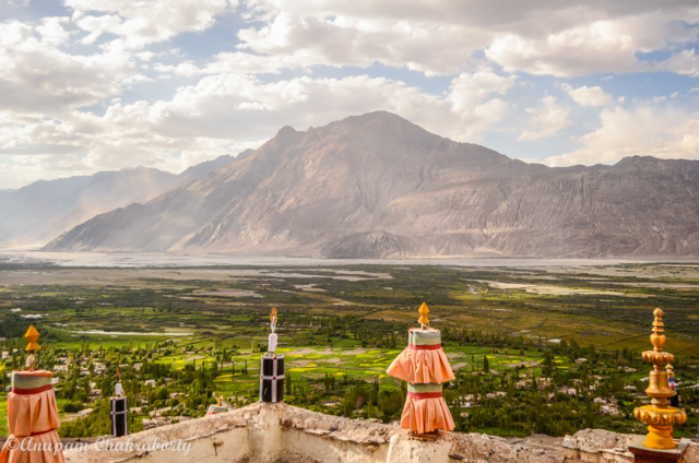 I reached the monastery driving through a rugged and dusty road. Located on the top of a hill overlooking the valley, Diskit Monastery offers a spectacular view of the Nubra Valley.