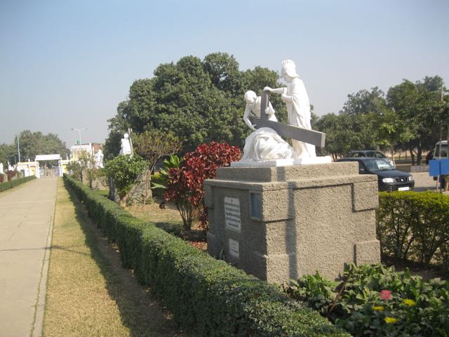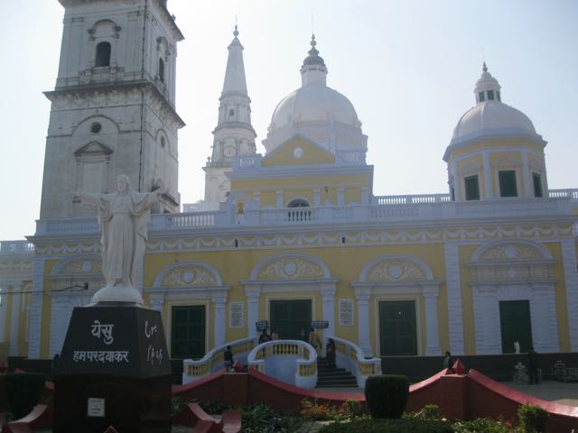 The church look rectangular from the outside owing to the verandah in front but inside it’s a perfect cross. The main altar is impressive with sunlight falling in through the octagonal window of the dome. The left wing houses the tomb of Begum ornate with statues depicting important people and aspects of her life. Standing to her left is Rae Singh, Diwan of Begum, who is the great-grandfather of Motilal Nehru.