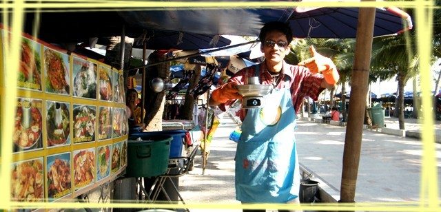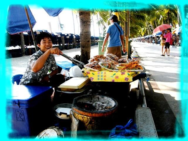 Fact 1 is understandable. Fact 2 is what we observe in Thailand, here on this beach and elsewhere. Thais enjoy eating and they do it constantly through the day – on a beach day the family arrives and orders something from one of the stalls. After a while, family members take out their own eatables from the picnic basket. Not much later the scene is repeated, punctuated by irritants like children running off to the sea, husbands flashing out bottles of beer, ladies getting into intense discussion about something apparently not very unfamiliar and so on. Many families carry their own barbeque sets (chulha like arrangements) complete with semi-cooked or raw food which is to be had in between savouring the locally available stuff.
