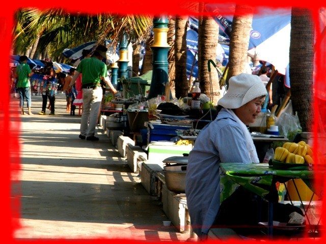Constant stream of vendors selling foodstuff and other wares criss-cross the area. Soon Sharmi links up with a lady offering Thai massage. Though it was on her agenda before coming to Thailand, she did not probably expect to get it so soon, so easy.