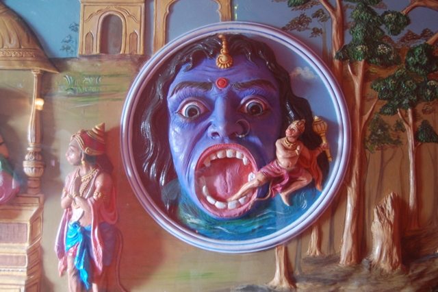 Lord Hanuman coming out of Sursa’s mouth – a snapshot from Lord Hanuman’s life. Jakhu Temple, Shimla