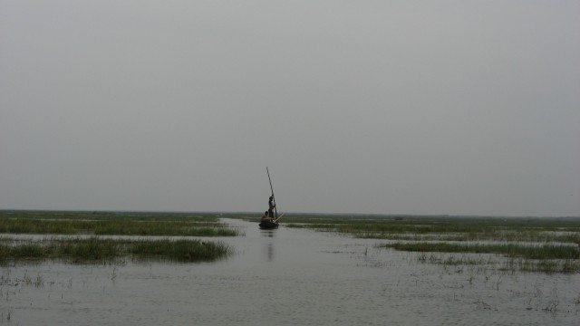 Before the evening we reached Nalban, an island midway between Satpada and Barkul. There, I realized why there was no big ferry between Satpada and Nalban. Water was shallow near this island. Even, if I would have jumped into it, it would have reached only till my waist. The boatman took the boat to a narrow stream and parked it there. If he would have taken it any further, it would have got stuck. The boat was parked in such a way that it made a bridge; one side touching the land on one side of the stream and the other side touching the land on the other side.