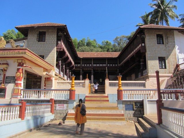 Soon, we joined the queue which had started to build up for the Annadana. And what a feast it turned out to be ! In a spankily clean dining hall, devotees are provided silver plates and served rice with delicious sambhar, rasam and buttermilk. Payasam, a South Indian desert is provided as a finishing touch to the meal. To say it was one of the most divine food I have had in any temple will not be an exaggeration. We thanked Goddess Annapoorneshwari for giving us the privilege of tasting her food once in our lifetime ! The meal more than made up for our disappointment at missing out on the temple food at Dharmasthala