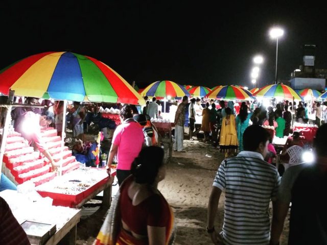 It was 6.30 pm and time for an evening walk along the shore where we can enjoy the cool coastal breeze. Model beach was within 200 meters from my hotel. It was dark and my plans to take a dip were potsponed to the next morning. The market along the beach was spreading a colorful canopy. The market flourishes towards the Golden beach area.