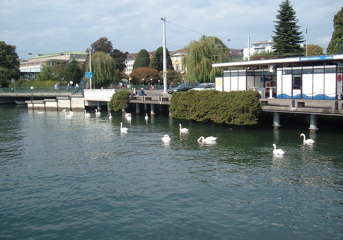 Crossing the famous bridge, Quaibrucke, under which River Limmat empties itself into Lake Zurich, we reached Burkliplatz, to take the suggested 90 minutes boat trip. The Swiss pass entitled us to a free passage in the second class and we settled in the bow of the boat. The boat was large enough to house a small cafeteria and a well- stocked bar and had two levels of decks. The boat zigzagged its way through the crystal clear water and provided us wide-angle views of the Swiss mountains and the impressive Lake Zurich shoreline. It was a serene and pleasant morning with the glorious sunshine, which even the geese and ducks were enjoying.