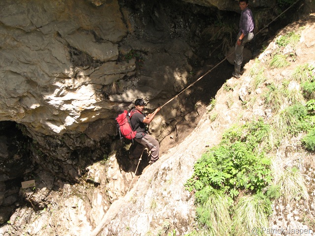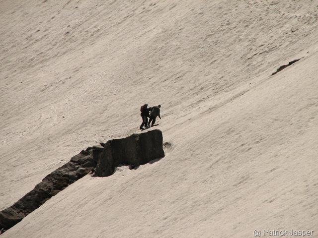 All around was white pristine snow as far as the eye could see. YHAI had already warned us to wear sunglasses during this part as snow blindness is a real threat. There was Ice, Ice and more ice as far as the eye could see until we were tired of the sea of white. It is very difficult task trying to walk on a narrow ledge about a foot wide, trampled smooth by the people ahead. Each step has to be made at a precise angle so that it wedges into the ice and doesn’t slip – there were one or two tricky places when i remembered thinking “this is it!”.