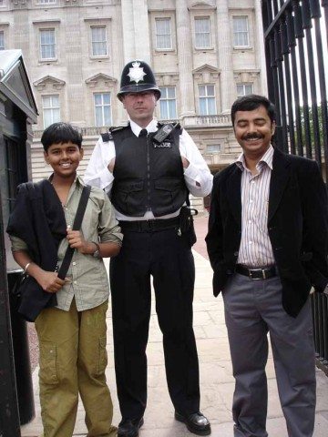 We then walked towards Buckingham Palace. It was a beautiful walk. There was a road made of red stones & there were trees on both sides. We saw some beautiful old palace-like buildings on the way – it was like being in another time and era. We met two medical emergency officers on ambulance bikes, who let us click pictures with them. They even let me sit on their fluorescent green bike.