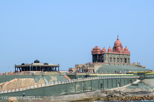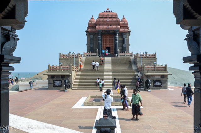 A memorial to Swamy Vivekananda stands on a rock surrounded by sea at Kanyakumari where he was presumably meditated on 25, 26 and 27th December 1892 before leaving for Chicago religious conference. It is the point of convergence of the three seas, the Arabian Sea, Bay of Bengal and the great Indian Ocean.