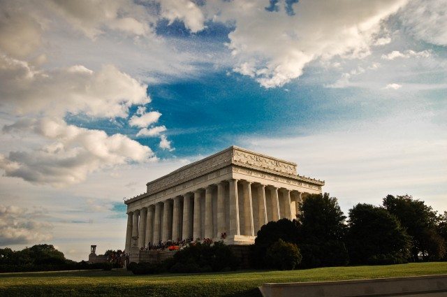I would spend some time sitting by the beautiful fountains of the World War II Memorial. It has the name of every U.S. state (and more) etched on its walls. The fountains light up beautifully during the evenings. From the World War II Memorial, I would walk up to the Lincoln Memorial. On the left (South) is the Korean War Memorial, the Tidal Basin (with the world famous cherry blossom festival in March), and the Jefferson Memorial (that looks like MIT to me). You can climb the steps to the Lincoln Memorial, go behind the Memorial, and spend some time admiring the sunset at the Potomac river to the west.